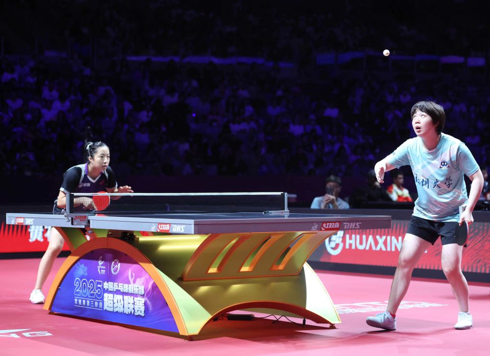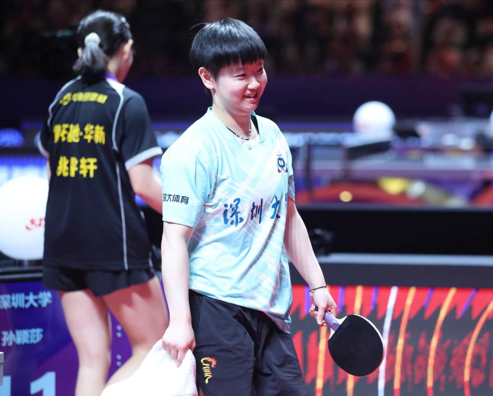 孙颖莎两分助深大取胜,山东鲁能胜上海龙腾 - 乒超女团